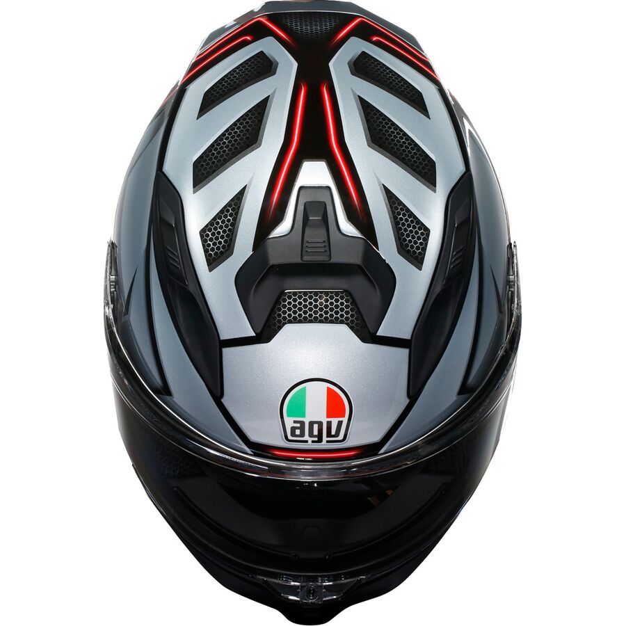 Conceived in a wind tunnel, the K7's design offers maximum stability at high speed, ideal for both sports and touring riding. The new visor mechanism ensures smooth and reliable activation, with a compact profile and more EPS in the temple area for greater protection. The K7 is also equipped with AGV's patented Air Diffusion Crown pad Technology ventilation system, which offers the highest level of internal air diffusion ever achieved in a helmet. Due to a combined crown pad and EPS design, this technology guarantees maximum ventilation efficiency. Every detail, from the visor to the spoiler, has been developed with the aim of optimizing the flow of air inside the crown pad to ensure superior riding comfort.