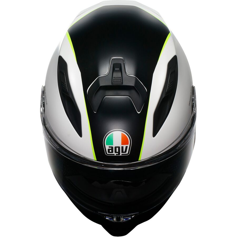 Conceived in a wind tunnel, the K7's design offers maximum stability at high speed, ideal for both sports and touring riding. The new visor mechanism ensures smooth and reliable activation, with a compact profile and more EPS in the temple area for greater protection. The K7 is also equipped with AGV's patented Air Diffusion Crown pad Technology ventilation system, which offers the highest level of internal air diffusion ever achieved in a helmet. Due to a combined crown pad and EPS design, this technology guarantees maximum ventilation efficiency. Every detail, from the visor to the spoiler, has been developed with the aim of optimizing the flow of air inside the crown pad to ensure superior riding comfort.