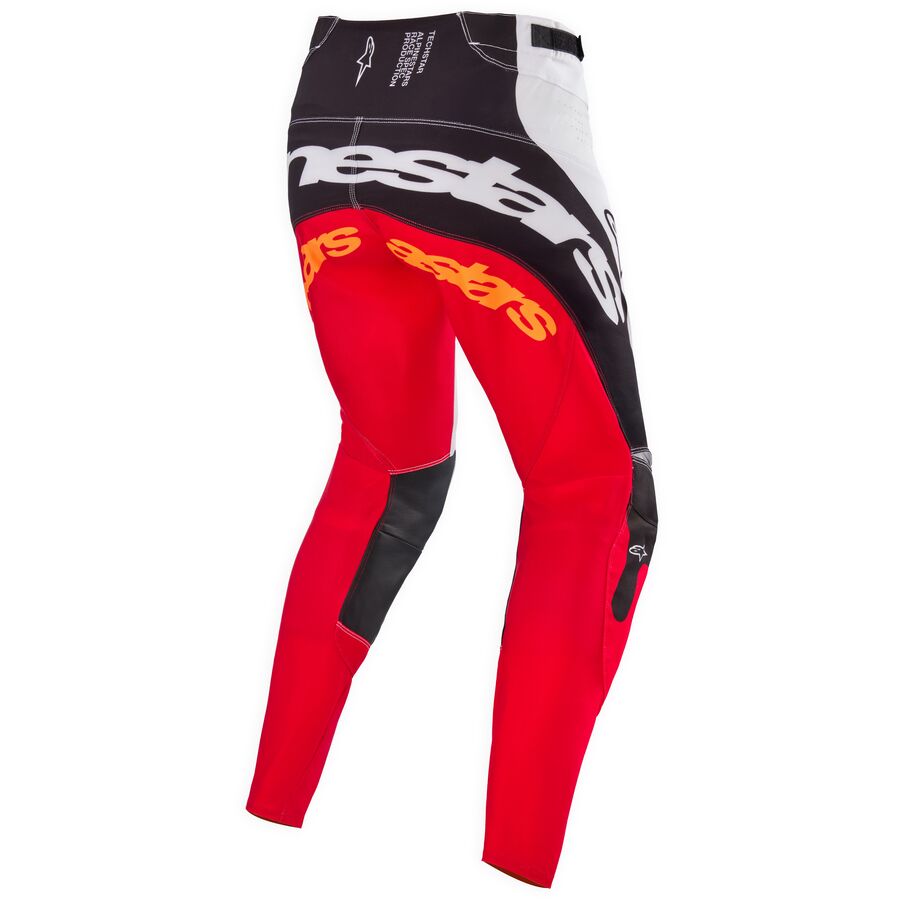 The Techstar Pants have a new reinforced materials construction that incorporates more stretch ripstop materials and an updated ergonomically engineered cut and optimized racing multi-panel pattern delivering a second skin feel and providing premium freedom of movement and superior mobility. The Techstar Pants are constructed from a durable 600D coated polyfabric and an advanced blend of stretch rip-stop fabric from the Supertech line offering enhanced stretchability and durability, with durable four-way stretch on the yoke, thighs, and upper knees. The performance-engineered single-layer construction and linerless design offer enhanced wearability, superior comfort, and lighter weight, providing an effortless on and off, even when worn with knee braces or knee guards.