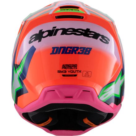 - Alpinestars New Safety Standard - Alpinestars has introduced a new in-house standard for the SM3 Youth to test the helmet's chin to conditions heavier than the homologation standard, and in order to pass the Alpinestars' new standards, the shell thickness and the structure of the helmet design itself have both been optimized in the chin area for superior impact performance.