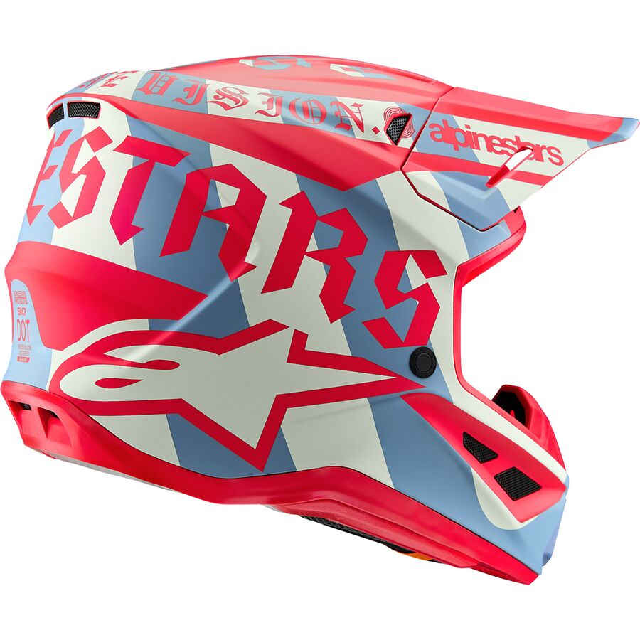 The S-M7 Helmet is engineered for off-road racing, and is optimized to offer the perfect blend of superior ventilation and comfort in a lightweight helmet, while its supremely aerodynamic composite shell delivers exceptional impact protection. As well as Alpinestars patented A-Head Fitment and Visor Detaching Systems, the S-M7 is equipped with innovative PLASMA technology at the lower side of the shell edge for optimum energy dissipation in case of contact with the collarbone area.