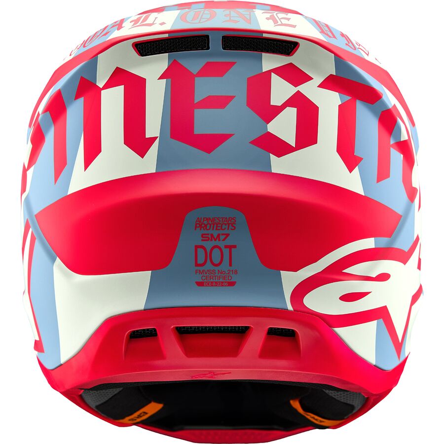 - This Alpinestars Patented Specific Coating technology reduces rotational acceleration transmitted to the rider's head: the S-M7 Helmet exceeds the new ECE 22.06 Peak Rotational Acceleration standard by 76%.