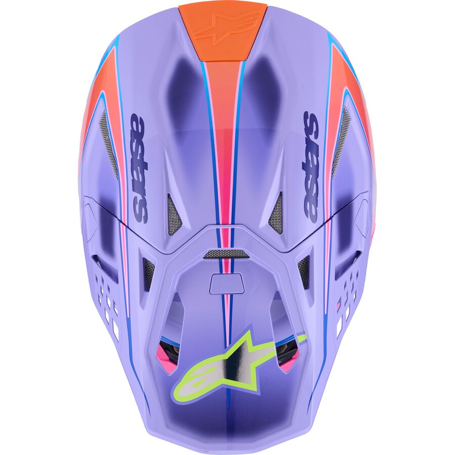 The design is coherent to the Alpinestars philosophy and shares distinctive themes with other products in the portfolio; a smooth, attractive, profile which is streamlined and free of any external channels and features that might act as a load point in an impact, or compromise the overall integrity of the construction. The surface curvature promotes reduced friction on impact, allowing deflection and the most efficient transfer of energy to protect the rider's head from direct force to the skull and referred to the neck and spinal column. The aperture is designed to accommodate a wide variety of goggles and the air vents in the shell are located to maximize ventilation efficiency.