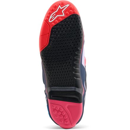 - Completely redesigned sole with proprietary grip sculpturing to improve foot-peg performance, grip and mud and water run-off. Exclusive dual-compound sole is seamlessly integrated to the multi-density foot base structure with built-in support. The sole offers superior durability, grip and feel while riding and improved performance on shifter. The central sole insert features micro-grip and side hooking grip design. It is easily replaceable and Alpinestars offers a full sole replacement and boot repair service.