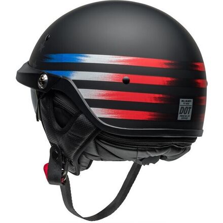 Looks can be deceiving. At first glance Bell's Pit Boss may look like many other half helmets in the cruiser category. Scratch the surface, though, and you'll discover quality that sets it above the competition: A lightweight Tri-Matrix shell with innovative Speed Dial fit system that prevents "lift and slippage" plaguing most other half helmets, a drop-down internal sun shield provides on-the-fly protection from the sun, and a removable neck curtain not only offers cold weather protection but also houses speaker pockets should as a convenient way to add audio enhancement. Snug the Pit Boss onto your head, thumb the starter button, one ride will confirm the Pit Boss as the King of the Road.