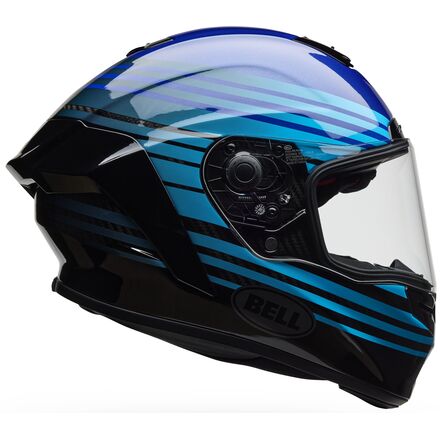 Designed for the racer with a day job - where every race weekend decision has to be carefully considered during the long week - the Race Star Flex DLX is the prime choice. This year, Bell has re-engineered the champ, shaving its weight by 10% and updating the headform for additional comfort. Race Star Flex DLX now features Bell ProTint photochromic technology on its Class 1 optics Panovision shield, as well as new speaker pockets and triple-density cheek pads with added comfort lining. From a 3k carbon fiber shell to Bell's proprietary Flex liner for progressive energy management, this helmet is packed with cutting-edge technology to deliver premier performance. The desire to win starts in the head.