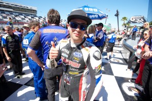 Congratulations to Bobby Fong who fought tough in the 72nd Running of the Daytona 200 and placed third - his best ever finish at Daytona. Fong, his first race with the RMR/Triple Crown team, rode his MotoSport.com Yamaha YZF-R6 in second place for a portion of the race before Garrett Gerloff passed him. Cameron Beaubier took first in the 57-lap, 200-mile race.