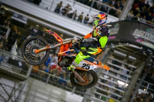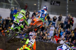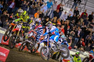 Eli Tomac took advantage of the rough Motocross style track at Daytona and got his first win of the season holding off Ryan Dungey for 20 laps. Jeremy Martin also got his first win of the season in the 250SX East class. Supercross takes off to the Great White North on Saturday with Round 10 in Toronto. All photos by Ryne Swanberg.