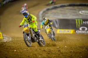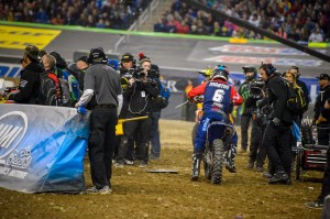 Ryan Dungey put on riding clinic at Detroit but a miscue when the Red Cross flag came out enforced a penalty and dropped him from the top spot to a third-place finish. Jason Anderson received the benefit taking his second win of the season and first since the season opener. Riders get a weekend off and return to racing on April 2 in Santa Clara, CA. Until then, check out all the action in the Motor City. All photos by Ryne Swanberg.