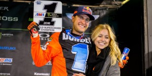 Ryan Dungey finished fourth which was more than enough to wrap up his second consecutive Supercross Championship in Round 16 at MetLife Stadium in East Rutherford, NJ. Ken Roczen got his second straight win with another dominating performance and Dungey couldn't make the pass on Cole Seely to keep his podium streak alive but the goal as Dungey said was to back up last year's title. Check out all the action from Round 16. The Supercross season ends Saturday in Las Vegas where the 250SX East and West class Championships get decided. All photos by Ryne Swanberg.