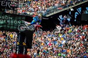Ken Roczen put an end to Ryan Dungey's win streak and checked out after Lap 1 beating Eli Tomac by nine seconds and the third-place Dungey by 25 seconds. It kept Dungey from wrapping up his second consecutive Championship which he'll try and nail down on Saturday at MetLife Stadium in East Rutherford, NJ. Until then check out all the action from Round 15 at Gillette Stadium in Foxborough, MA. All photos by Ryne Swanberg.