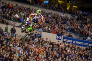 Eli Tomac won his third-straight taking the checkers in the 450 class on Saturday in Indianapolis for Round 11 of the 2017 Monster Energy Supercross series. He's now just 12 points from the first-place Ryan Dungey who finished third behind Marvin Musquin. Tomac has six wins on the season and four in the last five rounds.