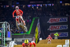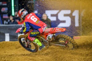 In the 250SX West class, Shane McElrath was unable to make it two straight falling off the podium with a fourth-place finish. Aaron Plessinger got the win and the points lead with 49. Joey Savatgy bounced back from last week's fourth-place season start with a second-place and Chase Sexton grabbed his first career podium in third. McElrath drops to second in points and Savatgy moves into third.