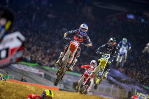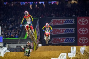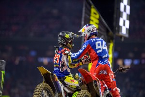 As we predicted, Jason Anderson got his first 450 class win of the 2018 Monster Energy Supercross season on Saturday in Houston passing Ken Roczen and leading the final nine laps to the checkers. The victory moves Anderson into first-place in the Championship race with 49 points. Roczen resumed an already remarkable comeback from last year's season-ending arm injury with a second-place finish and Justin Barcia continues to prove himself as a fill-in on the Factory Yamaha Team with his second straight podium in third. Roczen is in second-place on the season tied in points with Barcia.