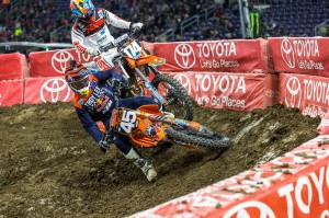 While a snow storm raged outside, Round 14 of the 2018 Monster Energy Supercross series brewed inside U.S Bank Stadium on Saturday in Minneapolis, MN with the final Triple Crown race of the season.