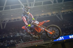 Marvin Musquin kept his championship hopes alive with a second-place performance, his best finish since his season opening win. Since a Heat race injury that left him out of competing in Round 2, Musquin has slowly regained traction besting his results every weekend after placing 13th for Round 3. Blake Baggett rounded out the 450 class podium with his second straight third-place finish.