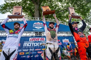 Tomac extended his points lead to 35, in his quest for a third straight Championship, over Marvin Musquin who finished third overall thanks to a spill over in Moto 1 that left him trapped under his bike and nearly in last place by the time he got going. He worked his way up to seventh to salvage some points along with a Moto 2 win. Jason Anderson finished second overall after a (2-4) day. Cooper Webb and Ken Roczen rounded out the Top 5, respectively.