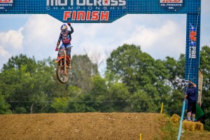 In the 250 class, Dylan Ferrandis dominated the field in Moto 1 beating Jeremy Martin by 26 seconds but a first turn crash in Moto 2 left him in the back of the pack, however, a Tomac like surge through the field brought Ferrandis up to third allowing him to secure second overall and a hold on the Red Plate. Martin meanwhile checked out for the second race, grabbing his first Moto win in more than two years and his second straight overall to cut Ferrandis' Championship points lead to a mere four. Martin, a two-time 250 class Champion, returned to racing in 2020 after a crash in Motocross two years ago left him with burst fracture of his L1 vertebrae.