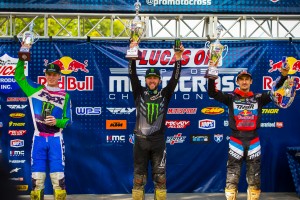 Eli Tomac finally got his season underway taking the overall for Round 3 of the 2020 Lucas Oil Pro Motocross Championship series on Saturday at the Ironman National in Crawfordsville, IN.