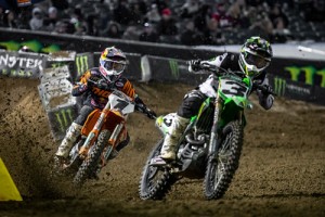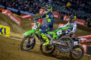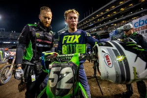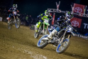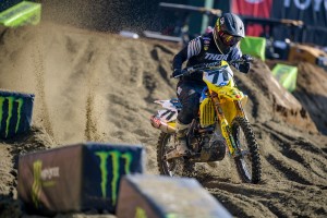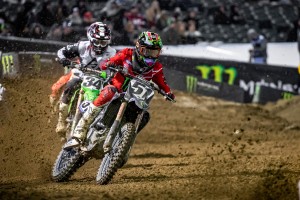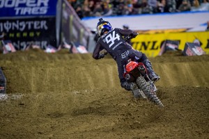 In the 250 class, Dylan Ferrandis battled Austin Forkner for nearly half the race before finally catching him in the whoops, sticking the pass and taking the checkers for the second time this year. Ferrandis takes the Red Plate from Justin Cooper who finished third behind Forkner. Cooper won the opening round but has yet to grab another checkers this season.