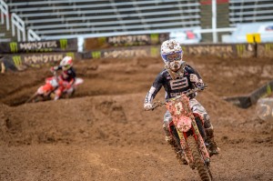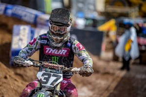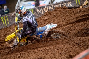 The 250 East class endured a Red Flag start after Garrett Marchbanks went down so riders had to start all over again after just a few laps. Shane McElrath, winner of the last two rounds, led early both times but in the race that counted eventually gave up the lead to defending Champion Chase Sexton who took back sole possession of the Red Plate and now leads McElrath by three points for the Championship. Colt Nichols finished in third.