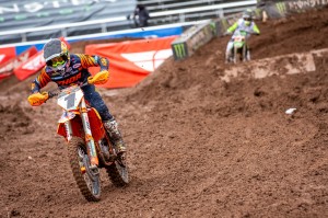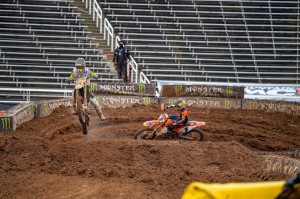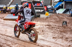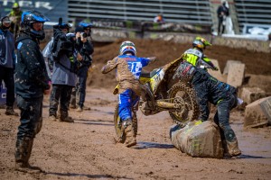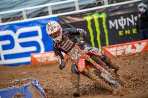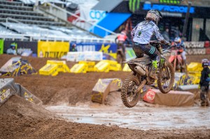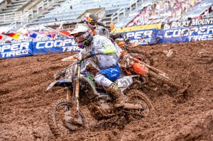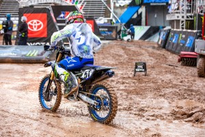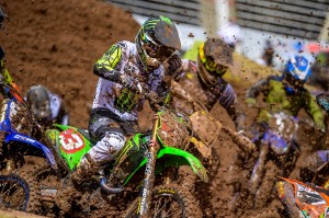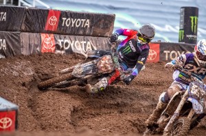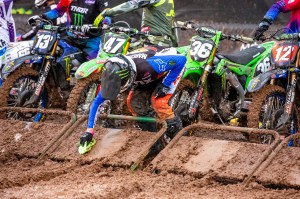 Facing a near 40 degree swing in temperature from Round 12 just four days earlier, Eli Tomac and Cooper Webb battled in some mud for Round 13 in the 450 class of the 2020 Monster Energy Supercross season on Sunday, lapped all other riders at least once, and dueled to the end as Tomac came out on top and extended his points lead in the Championship race.