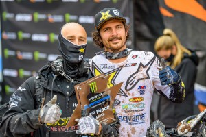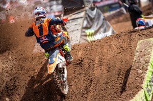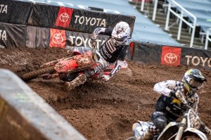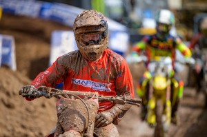 Tomac and Webb traded leads earlier in the race before Webb seemed to take control and looked promising for his second straight win. But with about three minutes remaining, Tomac sneaked past and edged out the win despite his engine starting to overheat as a slight wisp of white steam trailed behind. The win, Tomac's seventh on the year and third in the last four rounds, puts him 26 points in front of Ken Roczen who finished 10th and was lapped twice by Tomac and Webb, who more or less put on a mud riding clinic.