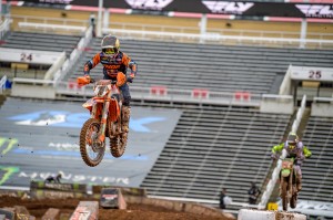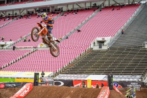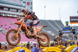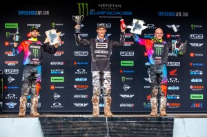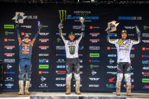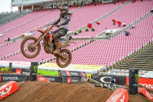 The win gives a comfortable cushion for Tomac, seeking his first 450 class Supercross title, with four rounds remaining. Webb, the defending Champion, moves to within six points of Roczen. Jason Anderson rounded out the podium crossing the finish line 44 seconds behind Tomac.