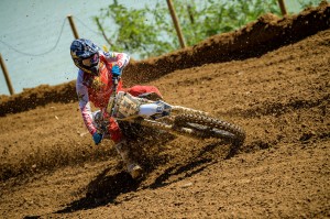 In Moto 1, Cooper grabbed the MotoSport.com holeshot and checked out for his third straight opening race win putting him in position for the overall. Lawrence took second working his way up from seventh and Martin got into third after starting sixth.