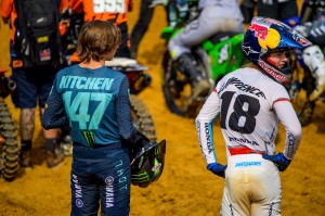 Ferrandis started from way back, well at least for him, in Moto 1 working his way to fighting position from fifth and getting around the likes of Eli Tomac, Chase Sexton and Cooper Webb. By then, Roczen had already checked out leading the entire way but if not for some crafty racing and the clock winding down, he might have been the first loser. Instead, Roczen held on for the win by less than a second. Sexton crossed in third with Tomac in fourth.