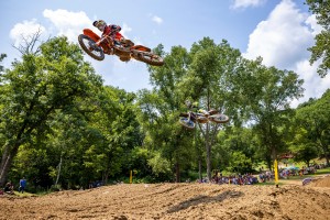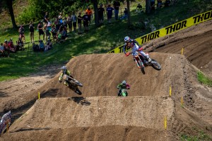 In the second race, RJ Hampshire (6-38) and Pierce Brown (15-39) came together resulting in a small pile-up than took out four other riders. One of those riders hit Brown and another ran him over as he desperately tried getting out of the way of oncoming traffic. Neither he nor Hampshire (Hampshire got track banners caught in his rear wheel) finished the race but the pile-up impacted series leader Jett Lawrence (4-6) as he finished fourth-overall, salvaging sixth in that race but lost nine points to Justin Cooper, who now holds the Red Plate. Cooper (2-3) had a mostly quiet day finishing third overall while Michael Mosiman (3-2) took second on the tiebreaker in his best outing of the season.
