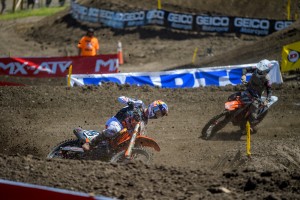 In Moto 1, Cianciarulo grabbed the holeshot but quickly lost the lead to Roczen as the two went back and forth for a time before Cianciarulo pushed Roczen slightly off the track for the lead. Meanwhile, Ferrandis, overall winner of Round 1 a week earlier, showed why he’s a title contender as a rookie by overtaking them both. But as Ferrandis and Roczen battled up front for bragging rights, Ferrandis rolled the throttle on a jump a bit too much just before a right hand turn which sent him off the track and opened the door for Roczen. Ferrandis (2-2) settled for second in that Moto, finishing second overall, and Cianciarulo’s (3-6) day put him in third. Justin Barcia (7-3) took fourth on the tie-breaker over Aaron Plessinger (5-4).