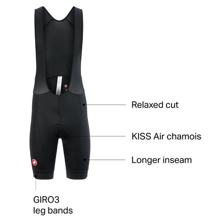 The Cento bibs features Castelli's Fondo Fit. This allows for a more comfortable and less constrictive fit across the thighs and a longer inseam for a comfortable cut with a little more room. If you have plans to do some charity and club rides and care more about comfort, on and off the bike, rather than aerodynamics, these are your bibs. At the leg hems, Castelli uses its GIRO3 leg bands to comfortably hold the leg openings in place without excessive pressure or constriction. The KISS Air chamois provides excellent comfort and support defusing road noise and offers cushioning from firm saddles. Reflective tabs keep you visible to motorists in low light and Castelli calls for the optimal temps ranging from 59 to 86-degrees Fahrenheit.