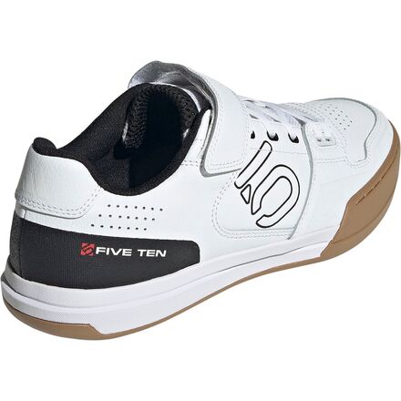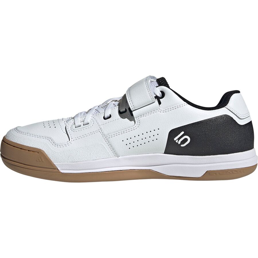 Learn MoreWhen we are riding aggressively, no ordinary shoe s going to cut it. We trust the Five Ten Hellcat shoe for its premium construction, gravity-oriented use, and casual style. The Hellcat Mountain bike shoes offer a leather upper that is super durable and abrasion-resistant, and a molded interior sock liner keeps our feet comfortable all ride long. A dense EVA midsole absorbs shock and vibrations from the trail and a stiffened toe cap provides protection from rocks on the trail. Five Ten's Stealth Marathon rubber outsole provides us with top-of-the-line grip and traction, and the 2-bolt clipless compatibility allows us to stay clipped into the pedals for better pedaling efficiency.