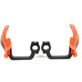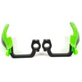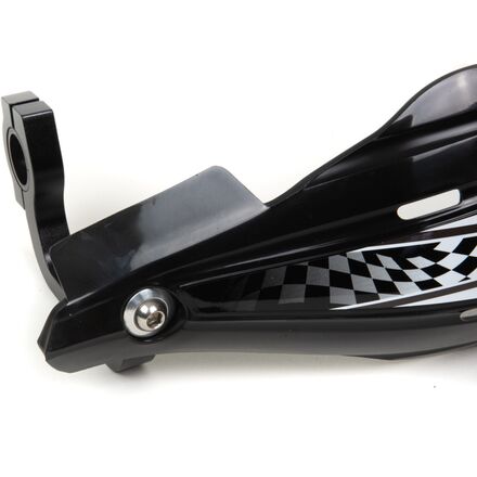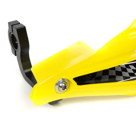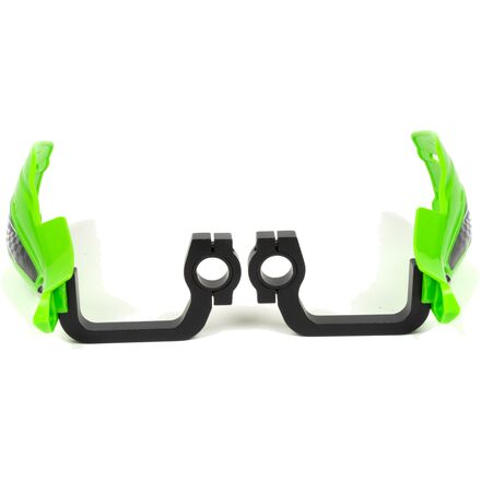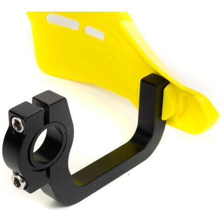 These guards have burly CNC-machined aluminum mounts - not wimpy plastic mounts like other guards of this price range! In addition, the mounts have Teflon bushings that allow the mount to rotate on the handlebar - instead of breaking / bending - in the even of a wipe out. Finally, the mounts are bead blasted and anodized black for lasting great looks!