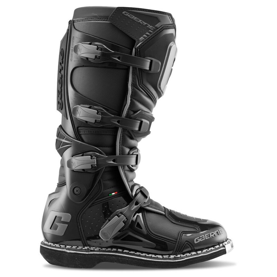 Learn MoreThe Fastback endurance boot by Gaerne offers innovation with a sleek new look. The exclusive Gaerne "Wrap Around" ankle pivot system allows riders to have more ankle support without sacrificing a comfortable fit. With the removal of the top two buckles, it is now possible to accommodate larger legs or the addition of knee-braces because of a wider opening. The heavy-duty burn guard, toe bumper, and the signature Gaerne sole, give the boot its finishing touches.