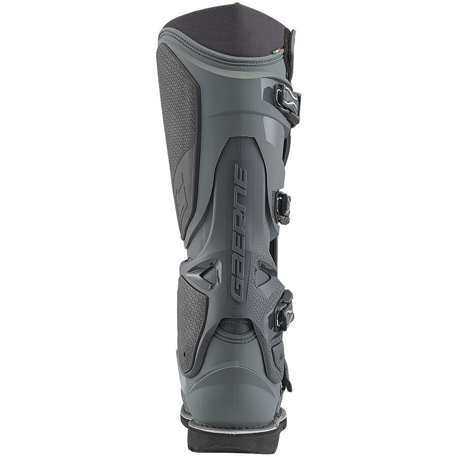 The Gaerne Enduro sole is crafted with a dedicated compound, providing exceptional grip on pegs. This tailored sole design enhances performance, delivering reliable traction and optimal functionality for the demands of enduro riding, especially in wet and muddy terrains.