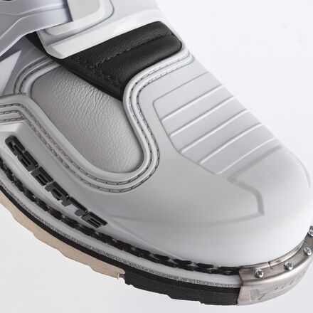 The goal of the Gaerne technicians is clear: to improve ergonomics without sacrificing safety. The newly designed Razorback helps to reduce the overall weight of the boot. The Gaerne Dual Stage Pivot System 1.0 protects the ankle with two limit switches which limit hyperextension, hyperflexion, and lateral movements. Internally the Memory foam 1.0 has also been re-engineered. This injected material takes the shape of the ankle, stabilizing the whole foot allowing the foot to become one with the boot. The inner leg, in contact with the bike, features Grip Guard 1.0 rubber elements with a compound developed with professional riders. This improves protection and optimizes the coefficient of friction for better riding feel. The sole features dual density inserts. Their position has been studied to guarantee grip and durability without forgetting traction and cushioning during walking. The Microshock heel features a compound with different densities designed to provide protection from micro-impact when cornering. The new Steel Bumper 1.0 toe is inserted between the sole and the upper. This steel insert makes it possible to reduce thickness, maintain the protective capacity and reduce weight. Finally, the unmistakable Goodyear Welted construction that distinguishes Gaerne boots as per tradition. This technique allows you to create a particularly solid and resistant structure. Durability thus becomes one of the strengths of every product dedicated to motocross. Also it allows the possibility of resoling (and therefore giving new life to the boot). The Goodyear Welted artisan technique finds a new aspect in Gaerne thanks to the use of modern machinery that contributes to raising the quality of the rigorously Made in Italy production process.