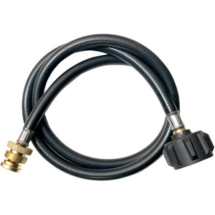 Learn MoreEasily connects to stoves and heaters that use single-use green propane bottles The hose attaches to all heaters and stoves that use single-use green propane bottles. It wraps up and stores around the valve on top of the tank when not in use. Sturdy construction - brass fitting and a durable rubber hose is designed for long-term usage with consistent output. Multi-suitability - perfect for lantern, heater, camp stove, portable grill, tabletop grill, and more. Great for camping, tailgating, heating needs, or having an outdoor cookout.ft. or 12 ft. lengths allow for optimal tank and stove/device placement in a variety of applications.