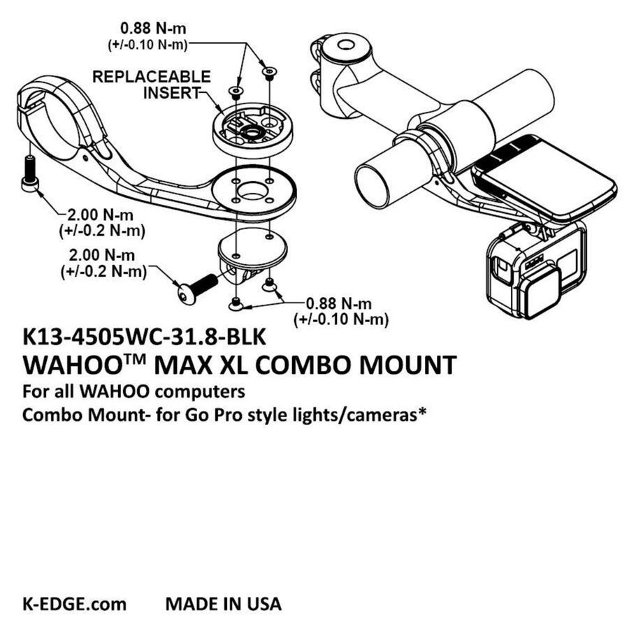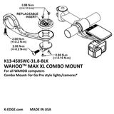 Learn MoreIt's hard to resist buying all of the fun new gadgets for our bikes, but where do we put them all? If you recently bought a video camera or light system to add to your handlebars but your Wahoo computer is already taking up the space you want to use, the Max XL Handlebar Wahoo Combo Mount is perfect for you. This mount uses the top to hold your Wahoo computer, while the bottom is designed to hold a GoPro-style camera and light interface and is compatible with an adapter. The Max XL is constructed of durable CNC machined aluminum, meaning it is more than able to hold the heaviest computers, lights, and cameras without any worry.