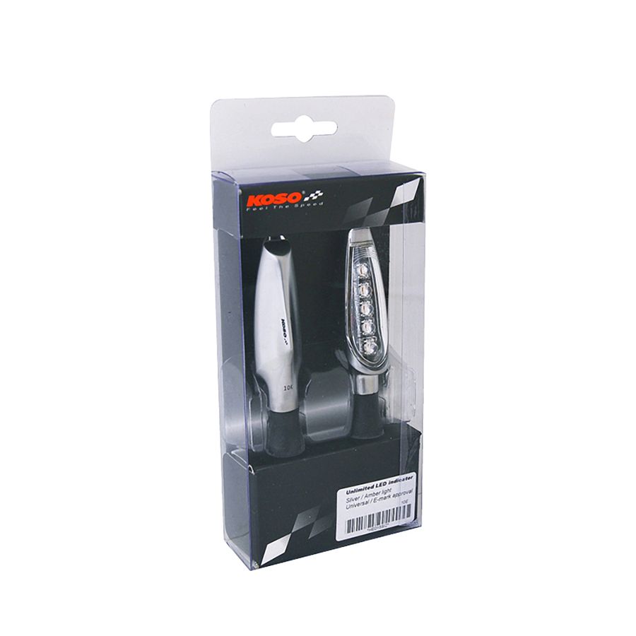 Learn MoreKoso's Unlimited LED indicator lights use five ultra-bright amber LED lights to increase visibility. Sold in pairs and available in matte black, silver or chrome, they are perfect to customize your motorcycle at low cost. A simple change, for a better look!