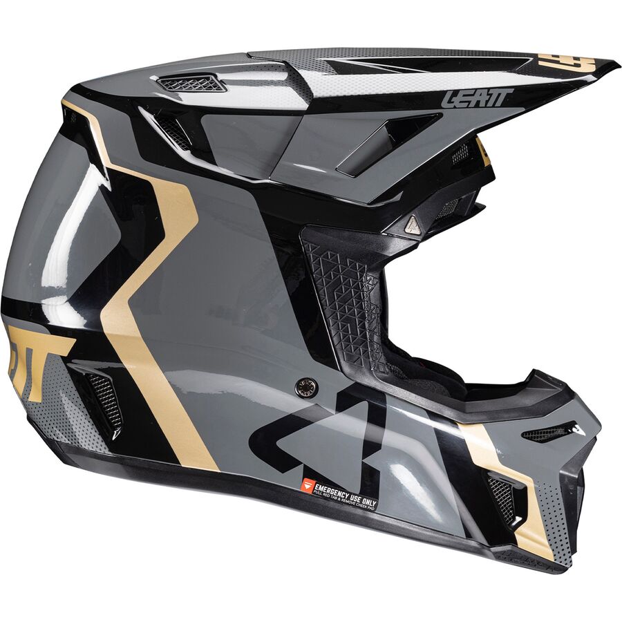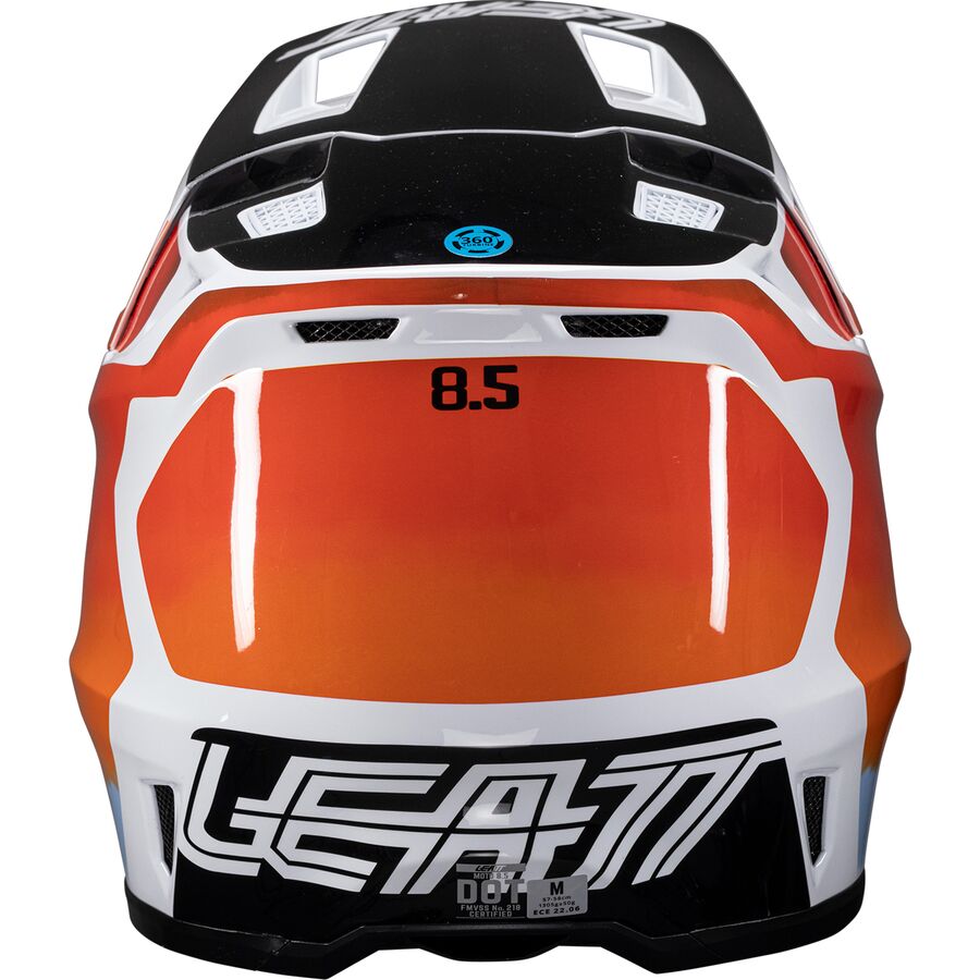 The Moto 8.5 helmet provides premium performance and protection. It features Leatt's patented 360 Turbine Technology, where the energy absorption of the turbines helps reduce the low-speed impact energy to the head and brain. The helmet is lightweight and constructed with a composite shell available in three sizes. Large ventilation channels have been integrated into the helmet's structure, ensuring that riders remain cool and comfortable even at lower speeds. The visor (extension included) is equipped with a breakaway function. The 8.5 Helmet Kit is both ECE and DOT certified.