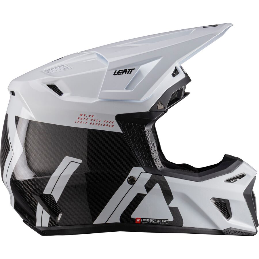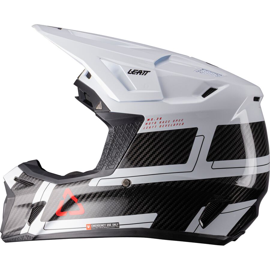 The Moto 9.5 carbon helmet is the pinnacle of high-performance protection. It features Leatt's patented 360 Turbine Technology, where the energy absorption of the turbines helps reduce the low-speed impact energy to the head and brain. Crafted from a carbon matrix shell, the helmet is lightweight yet robust. It has four densities of impact foam to absorb and disperse collision forces. The visor and cheek pads feature quick-release functionality, and the hydration side port is compatible with an optional hands-free kit. The 9.5 Helmet Kit is both ECE and DOT certified.