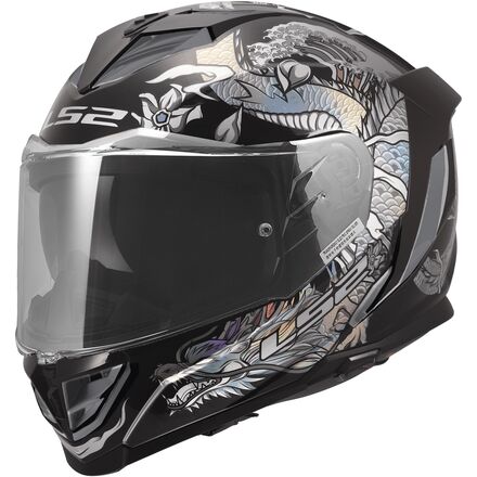 The Assault III Touring helmet is designed for both city roads and highways, featuring a lightweight yet impact-resistant KPA (Kinetic Polymer Alloy) shell for enhanced safety. Its aerodynamic shape improves stability at high speeds, while a large upper air intake ensures optimal ventilation for rider comfort. The helmet comes equipped with a clear anti-scratch shield, a Pinlock 70 MaxVision insert for a wide, fog-free field of view, and an integrated drop-down sunshield for convenient glare protection in bright conditions. This model also features colored vents and shields that accent the helmet's graphics.