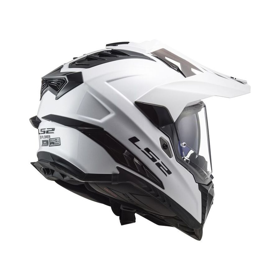 Learn MoreThe LS2 Helmets Explorer adventure helmet. Adventure riding continues to be the fastest growing segments in the motorcycle industry, with motorcycles producing well over 100 horsepower and capable of doing triple digit speeds, LS2 determined it was time to raise the level of performance in an adventure helmet. The LS2 Explorer brings state of the art technology, offering LS2's high-quality, high-performance fiberglass composite shell. Offering a plush, technical fabric interior with 3D laser-cut cheek pads for high mileage comfort. Ultra-wide eye port with optically correct Class A polycarbonate shield. The Explorer includes LS2's popular drop-down sunshield. The peak is designed with large ports for maximum airflow and comes in handy when you are riding into the sun at the end of a long day. Dynamic flow-through ventilation is ported through the technically advanced EPS. Ventilation is fully adjustable to help you maintain control over the elements. The LS2 Explorer raises the game in modern adventure helmets.