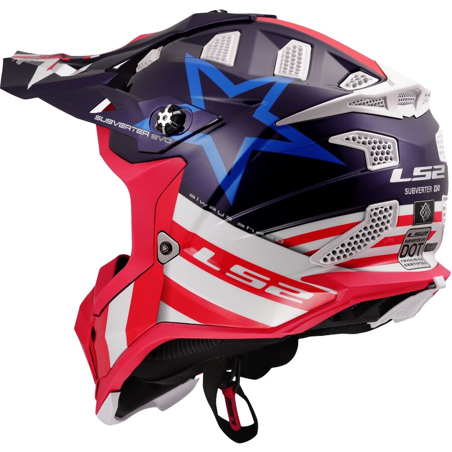 Learn MoreResponding to customer requests for high end MX and off-road performance at a value price, LS2 has applied the latest in technology to revise their popular Subverter. The new Subverter EVO utilizes Kinetic Polymer Alloy (KPA) offering energy managing flexibility and penetration resistance equal to high-end fiber products for the shell. LS2 has added a high-performance multi-density EPS for state-of-the-art impact management. 35 separate air intake ports allow for the absolute maximum ventilation of any MX helmet on the market today. A wide eye port accommodates virtually any popular goggle. The fully removable and washable high-end comfort padding keeps the rider fresh and comfortable whether racing or spending a day on the trails. LS2 uses a double D-ring chin strap for ultimate security. The LS2 Helmets MX Subverter EVO makes high-end technology available at an extraordinary value.