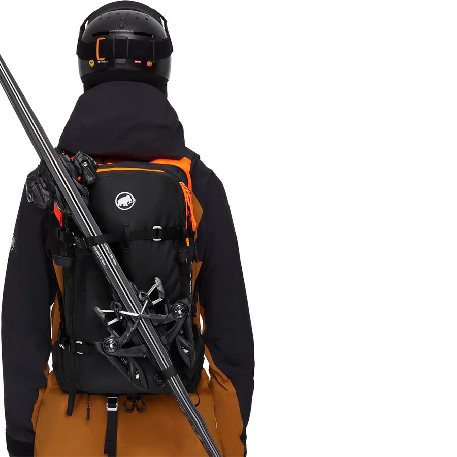 Learn MoreWhen kitting up for a sunrise skin, we organize our gear in the Free 22L Removable Airbag 3.0. This pack gives everything a place with special compartments and attachment points for our avy gear, radio, skis, and helmet, and comes equipped with Mammut's ultralight, compact Airbag System 3.0 that deploys in full in just 3 seconds. The running-vest-inspired harness system hugs our back for a fit that won't disrupt our flow, while the thermoformed back panel boosts comfort and sheds spray.