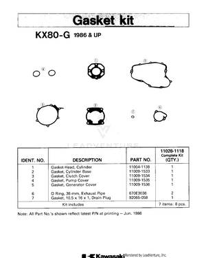 1987 Kawasaki KX80 OEM Parts