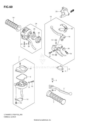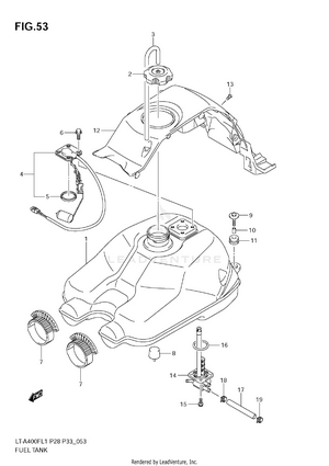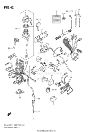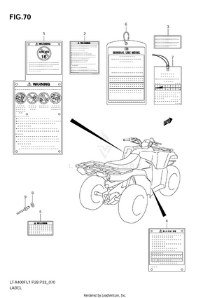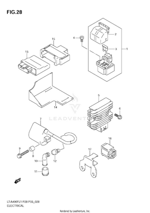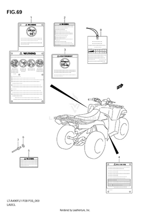AIR CLEANER BATTERY BELT COOLING DUCT CAM CHAIN CAMSHAFT/VALVE CARRIER (LT-A400FL1 E28) CARRIER (LT-A400FL1 E33) CARRIER (LT-A400FZL1 E28) CARRIER (LT-A400FZL1 E33) COOLING FAN CRANK BALANCER CRANKCASE CRANKCASE COVER CRANKSHAFT CYLINDER CYLINDER HEAD ELECTRICAL FINAL BEVEL GEAR (FRONT) FINAL BEVEL GEAR (REAR) FOOTREST FOOTREST MUDGUARD FRAME FRONT BRAKE HOSE FRONT CALIPER FRONT DRIVE SHAFT FRONT FENDER (LT-A400FL1 E28) FRONT FENDER (LT-A400FL1 E33) FRONT FENDER (LT-A400FZL1 E28) FRONT FENDER (LT-A400FZL1 E33) FRONT LAMP HOUSING FRONT MASTER CYLINDER FRONT WHEEL FUEL PUMP FUEL TANK GASKET SET GEAR SHIFTING HANDLE LEVER HANDLEBAR HEADLAMP (LT-A400FL1 E28) HEADLAMP (LT-A400FL1 E33) HEADLAMP (LT-A400FZL1 E28) HEADLAMP (LT-A400FZL1 E33) LABEL (LT-A400FL1 E28) LABEL (LT-A400FL1 E33) LABEL (LT-A400FZL1 E28) LABEL (LT-A400FZL1 E33) LEFT REAR WHEEL MAGNETO MUFFLER OIL COOLER OIL PUMP OPTIONAL REAR BRAKE REAR COMBINATION LAMP (LT-A400FL1 E28) REAR COMBINATION LAMP (LT-A400FL1 E33) REAR COMBINATION LAMP (LT-A400FZL1 E28) REAR COMBINATION LAMP (LT-A400FZL1 E33) REAR FENDER (LT-A400FL1 E28) REAR FENDER (LT-A400FL1 E33) REAR FENDER (LT-A400FZL1 E28) REAR FENDER (LT-A400FZL1 E33) REAR SWINGINGARM RECOIL COVER RIGHT REAR WHEEL SEAT SECONDARY DRIVE SHIFT LEVER SPEEDOMETER (LT-A400FL1 E28) SPEEDOMETER (LT-A400FL1 E33) SPEEDOMETER (LT-A400FZL1 E28) SPEEDOMETER (LT-A400FZL1 E33) STARTER CLUTCH STARTING MOTOR STEERING KNUCKLE STEERING SHAFT SUSPENSION ARM THROTTLE BODY TRANSMISSION (1) TRANSMISSION (2) WIRING HARNESS (LT-A400FL1 E28) WIRING HARNESS (LT-A400FL1 E33) WIRING HARNESS (LT-A400FZL1 E28) WIRING HARNESS (LT-A400FZL1 E33)