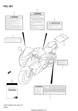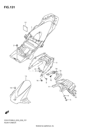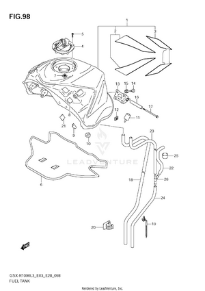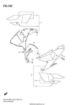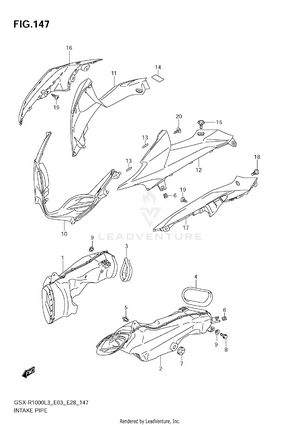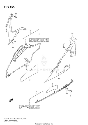 2ND AIR AIR CLEANER BATTERY (GSX-R1000L3 E03) BATTERY (GSX-R1000L3 E28) BATTERY (GSX-R1000L3 E33) BATTERY (GSX-R1000ZL3 E03) BATTERY (GSX-R1000ZL3 E28) BATTERY (GSX-R1000ZL3 E33) BODY COWL COVER CAM CHAIN CAMSHAFT - VALVE CLUTCH COWLING BODY (GSX-R1000L3 E03) COWLING BODY (GSX-R1000L3 E28) COWLING BODY (GSX-R1000L3 E33) COWLING BODY (GSX-R1000ZL3 E03) COWLING BODY (GSX-R1000ZL3 E28) COWLING BODY (GSX-R1000ZL3 E33) CRANK BALANCER CRANKCASE CRANKCASE COVER CRANKSHAFT CYLINDER HEAD CYLINDER HEAD COVER ELECTRICAL (GSX-R1000L3 E03) ELECTRICAL (GSX-R1000L3 E28) ELECTRICAL (GSX-R1000L3 E33) ELECTRICAL (GSX-R1000ZL3 E03) ELECTRICAL (GSX-R1000ZL3 E28) ELECTRICAL (GSX-R1000ZL3 E33) EVAP SYSTEM (GSX-R1000L3 E33) EVAP SYSTEM (GSX-R1000ZL3 E33) FOOTREST FRAME (GSX-R1000L3 E03) FRAME (GSX-R1000L3 E28) FRAME (GSX-R1000L3 E33) FRAME (GSX-R1000ZL3 E03) FRAME (GSX-R1000ZL3 E28) FRAME (GSX-R1000ZL3 E33) FRAME CENTER COVER (GSX-R1000L3 E03) FRAME CENTER COVER (GSX-R1000L3 E28) FRAME CENTER COVER (GSX-R1000L3 E33) FRAME CENTER COVER (GSX-R1000ZL3 E03) FRAME CENTER COVER (GSX-R1000ZL3 E28) FRAME CENTER COVER (GSX-R1000ZL3 E33) FRAME COVER (GSX-R1000L3 E03) FRAME COVER (GSX-R1000L3 E28) FRAME COVER (GSX-R1000L3 E33) FRAME COVER (GSX-R1000ZL3 E03) FRAME SIDE COVER FRONT BRAKE HOSE FRONT CALIPER (GSX-R1000L3 E03) FRONT CALIPER (GSX-R1000L3 E28) FRONT CALIPER (GSX-R1000L3 E33) FRONT CALIPER (GSX-R1000ZL3 E03) FRONT CALIPER (GSX-R1000ZL3 E28) FRONT CALIPER (GSX-R1000ZL3 E33) FRONT DAMPER (GSX-R1000L3 E03) FRONT DAMPER (GSX-R1000L3 E28) FRONT DAMPER (GSX-R1000L3 E33) FRONT DAMPER (GSX-R1000ZL3 E03) FRONT DAMPER (GSX-R1000ZL3 E28) FRONT DAMPER (GSX-R1000ZL3 E33) FRONT FENDER (GSX-R1000L3 E03) FRONT FENDER (GSX-R1000L3 E28) FRONT FENDER (GSX-R1000L3 E33) FRONT FENDER (GSX-R1000ZL3 E03) FRONT FENDER (GSX-R1000ZL3 E28) FRONT FENDER (GSX-R1000ZL3 E33) FRONT MASTER CYLINDER FRONT WHEEL (GSX-R1000L3 E03) FRONT WHEEL (GSX-R1000L3 E28) FRONT WHEEL (GSX-R1000L3 E33) FRONT WHEEL (GSX-R1000ZL3 E03) FRONT WHEEL (GSX-R1000ZL3 E28) FRONT WHEEL (GSX-R1000ZL3 E33) FUEL PUMP FUEL TANK (GSX-R1000L3 E03) FUEL TANK (GSX-R1000L3 E28) FUEL TANK (GSX-R1000L3 E33) FUEL TANK (GSX-R1000ZL3 E03) FUEL TANK (GSX-R1000ZL3 E28) FUEL TANK (GSX-R1000ZL3 E33) FUEL TANK FRONT COVER (GSX-R1000L3 E03) FUEL TANK FRONT COVER (GSX-R1000L3 E28) FUEL TANK FRONT COVER (GSX-R1000L3 E33) FUEL TANK FRONT COVER (GSX-R1000ZL3 E03) FUEL TANK FRONT COVER (GSX-R1000ZL3 E28) FUEL TANK FRONT COVER (GSX-R1000ZL3 E33) GASKET SET GEAR SHIFTING GENERATOR HANDLE LEVER HANDLE SWITCH HANDLEBAR HEADLAMP (GSX-R1000L3 E03) HEADLAMP (GSX-R1000L3 E28) HEADLAMP (GSX-R1000L3 E33) HEADLAMP (GSX-R1000ZL3 E03) HEADLAMP (GSX-R1000ZL3 E28) HEADLAMP (GSX-R1000ZL3 E33) INTAKE PIPE (GSX-R1000L3 E03) INTAKE PIPE (GSX-R1000L3 E28) INTAKE PIPE (GSX-R1000L3 E33) INTAKE PIPE (GSX-R1000ZL3 E03) INTAKE PIPE (GSX-R1000ZL3 E28) INTAKE PIPE (GSX-R1000ZL3 E33) LABEL (GSX-R1000L3 E03) LABEL (GSX-R1000L3 E28) LABEL (GSX-R1000L3 E33) LABEL (GSX-R1000ZL3 E03) LABEL (GSX-R1000ZL3 E28) LABEL (GSX-R1000ZL3 E33) MUFFLER (GSX-R1000L3 E03) MUFFLER (GSX-R1000L3 E28) MUFFLER (GSX-R1000L3 E33) MUFFLER (GSX-R1000ZL3 E03) MUFFLER (GSX-R1000ZL3 E28) MUFFLER (GSX-R1000ZL3 E33) OIL COOLER OIL PAN - OIL PUMP OPTIONAL PARTS HOLDER BRACKET RADIATOR (GSX-R1000L3 E03) RADIATOR (GSX-R1000L3 E28) RADIATOR (GSX-R1000L3 E33) RADIATOR (GSX-R1000ZL3 E03) RADIATOR (GSX-R1000ZL3 E28) RADIATOR (GSX-R1000ZL3 E33) RADIATOR HOSE REAR CALIPER REAR COMBINATION LAMP (GSX-R1000L3 E03) REAR COMBINATION LAMP (GSX-R1000L3 E28) REAR COMBINATION LAMP (GSX-R1000L3 E33) REAR COMBINATION LAMP (GSX-R1000ZL3 E03) REAR COMBINATION LAMP (GSX-R1000ZL3 E28) REAR COMBINATION LAMP (GSX-R1000ZL3 E33) REAR CUSHION LEVER (GSX-R1000L3 E03) REAR CUSHION LEVER (GSX-R1000L3 E28) REAR CUSHION LEVER (GSX-R1000L3 E33) REAR CUSHION LEVER (GSX-R1000ZL3 E03) REAR CUSHION LEVER (GSX-R1000ZL3 E28) REAR CUSHION LEVER (GSX-R1000ZL3 E33) REAR FENDER (GSX-R1000L3 E03) REAR FENDER (GSX-R1000L3 E28) REAR FENDER (GSX-R1000L3 E33) REAR FENDER (GSX-R1000ZL3 E03) REAR FENDER (GSX-R1000ZL3 E28) REAR FENDER (GSX-R1000ZL3 E33) REAR MASTER CYLINDER REAR SWINGING ARM (GSX-R1000L3 E03) REAR SWINGING ARM (GSX-R1000L3 E28) REAR SWINGING ARM (GSX-R1000L3 E33) REAR SWINGING ARM (GSX-R1000ZL3 E03) REAR SWINGING ARM (GSX-R1000ZL3 E28) REAR SWINGING ARM (GSX-R1000ZL3 E33) REAR WHEEL (GSX-R1000L3 E03) REAR WHEEL (GSX-R1000L3 E28) REAR WHEEL (GSX-R1000L3 E33) REAR WHEEL (GSX-R1000ZL3 E03) REAR WHEEL (GSX-R1000ZL3 E28) REAR WHEEL (GSX-R1000ZL3 E33) SEAT SEAT TAIL BOX (GSX-R1000ZL3 E03) SEAT TAIL BOX (GSX-R1000ZL3 E28) SEAT TAIL BOX (GSX-R1000ZL3 E33) SEAT TAIL BOX (OPTIONAL) (GSX-R1000L3 E03) SEAT TAIL BOX (OPTIONAL) (GSX-R1000L3 E28) SEAT TAIL BOX (OPTIONAL) (GSX-R1000L3 E33) SIDE COWLING (GSX-R1000L3 E03) SIDE COWLING (GSX-R1000L3 E28) SIDE COWLING (GSX-R1000L3 E33) SIDE COWLING (GSX-R1000ZL3 E03) SIDE COWLING (GSX-R1000ZL3 E28) SIDE COWLING (GSX-R1000ZL3 E33) SIGNAL GENERATOR SPEEDOMETER (GSX-R1000L3 E03) SPEEDOMETER (GSX-R1000L3 E28) SPEEDOMETER (GSX-R1000L3 E33) SPEEDOMETER (GSX-R1000ZL3 E03) SPEEDOMETER (GSX-R1000ZL3 E28) SPEEDOMETER (GSX-R1000ZL3 E33) STAND STARTER CLUTCH STARTING MOTOR STEERING STEM THROTTLE BODY (GSX-R1000L3 E03) THROTTLE BODY (GSX-R1000L3 E28) THROTTLE BODY (GSX-R1000L3 E33) THROTTLE BODY (GSX-R1000ZL3 E03) THROTTLE BODY (GSX-R1000ZL3 E28) THROTTLE BODY (GSX-R1000ZL3 E33) THROTTLE BODY HOSE/JOINT (GSX-R1000L3 E03) THROTTLE BODY HOSE/JOINT (GSX-R1000L3 E28) THROTTLE BODY HOSE/JOINT (GSX-R1000L3 E33) THROTTLE BODY HOSE/JOINT (GSX-R1000ZL3 E03) THROTTLE BODY HOSE/JOINT (GSX-R1000ZL3 E28) THROTTLE BODY HOSE/JOINT (GSX-R1000ZL3 E33) TRANSMISSION TURNSIGNAL LAMP UNDER COWLING (GSX-R1000L3 E03) UNDER COWLING (GSX-R1000L3 E28) UNDER COWLING (GSX-R1000L3 E33) UNDER COWLING (GSX-R1000ZL3 E03) UNDER COWLING (GSX-R1000ZL3 E28) UNDER COWLING (GSX-R1000ZL3 E33) WATER PUMP WIRING HARNESS (GSX-R1000L3 E03) WIRING HARNESS (GSX-R1000L3 E28) WIRING HARNESS (GSX-R1000L3 E33) WIRING HARNE